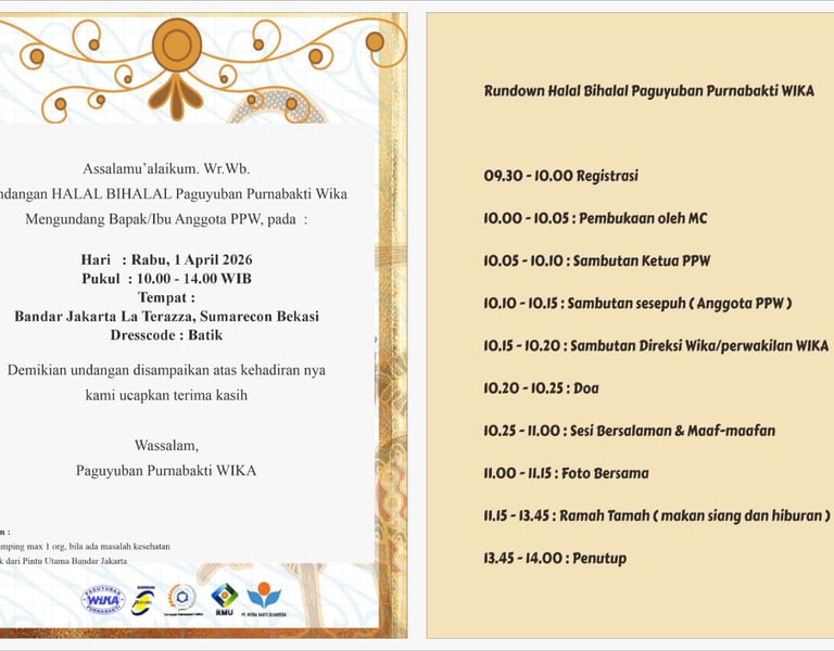 Kunjungan Silaturahmi Purnabakti WIKA, 3 Desember 2025 di Hotel : Swiss Bistro, Hotel Swiss (seberang ktr HK), Jl. MT Haryono No.9, RT.1/RW.6, Cawang, Kramat Jati, Jakarta Timur 13630